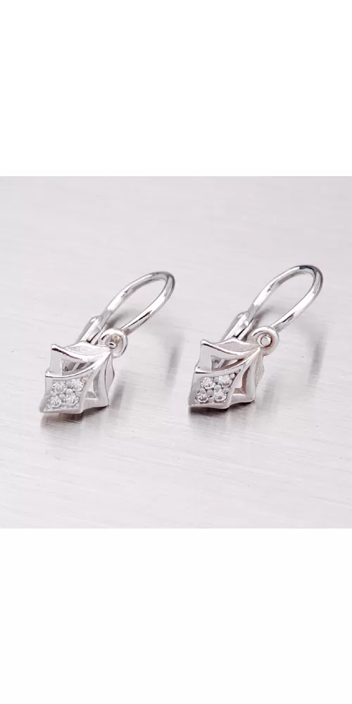 Detské náušnice sú vyrobené z bieleho štrnásťkarátového zlata 585/1000 v kombinácii lesklej a matnej povrchovej úpravy so zirkónmi bielej farby. Náušničky sa zapínajú na brizúry.
