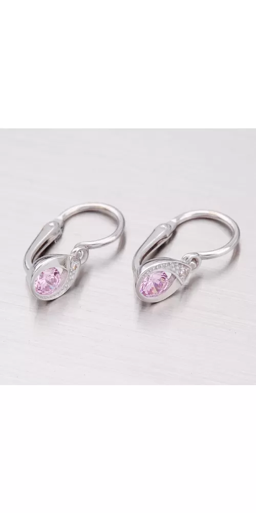 Detské náušnice sú vyrobené z bieleho štrnásťkarátového zlata 585/1000 v lesklej povrchovej úprave s jedným zirkónom ružovej a jedným bielej farby. Náušničky sa zapínajú na brizúry.
