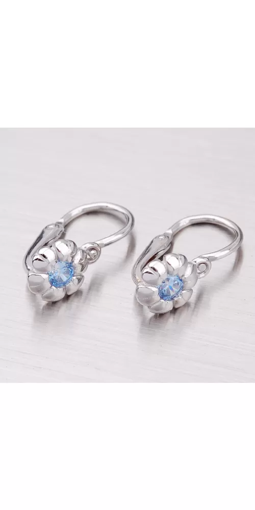 Detské náušnice v tvare kvietky sú vyrobené z bieleho štrnásťkarátového zlata 585/1000 v lesklej povrchovej úprave s jedným zirkónom modrej farby.… Celý popis