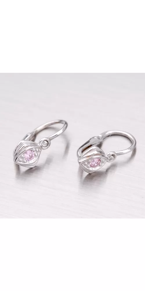 Detské náušnice sú vyrobené z bieleho štrnásťkarátového zlata 585/1000 v lesklej povrchovej úprave s jedným zirkónom ružovej farby. Náušničky sa zapínajú na brizúry.