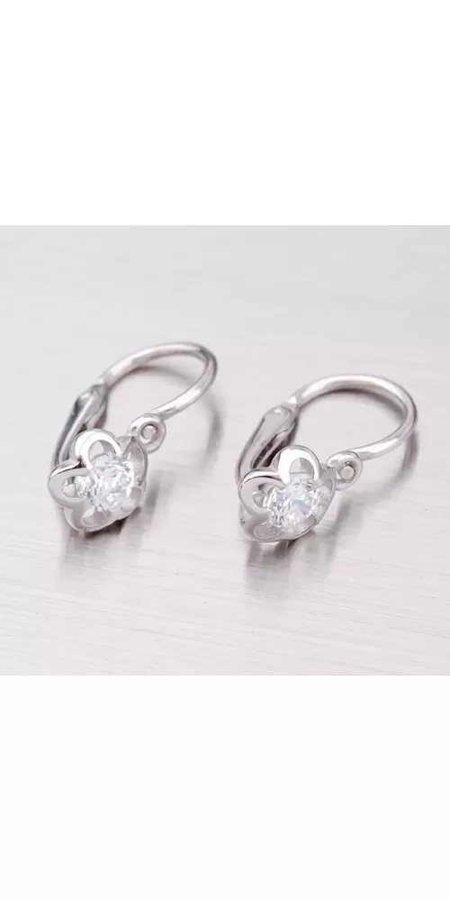Detské náušnice v tvare kvietky sú vyrobené z bieleho štrnásťkarátového zlata 585/1000 v lesklej povrchovej úprave s jedným zirkónom bielej farby. Náušničky sa zapínajú na brizúry.