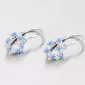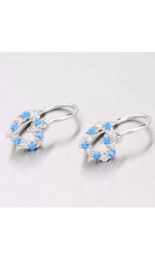 Detské náušničky v tvare srdiečka, sú vyrobené z bieleho štrnásťkarátového zlata 585/1000 v lesklej povrchovej úprave, ktoré sú dookola vysadené dvanástimi malými zirkónmi na striedačku v modrej a bielej farbe.