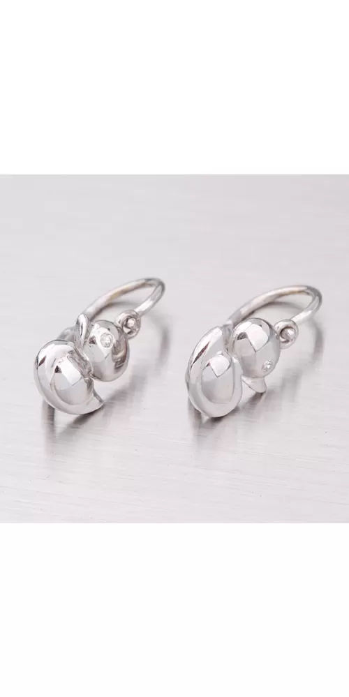 Detské náušnice v tvare kačičiek sú vyrobené z bieleho štrnásťkarátového zlata 585/1000 v kombinácii lesklej a matnej povrchovej úpravy s jedným zirkónom bielej farby. Náušničky sa zapínajú na brizúry.