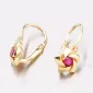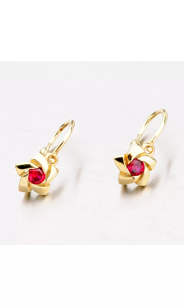 Náušničky v tvare kvietky, sú vyrobené zo žltého štrnásťtikarátového zlata 585/1000 v lesklej povrchovej úprave s jedným červeným zirkónom.