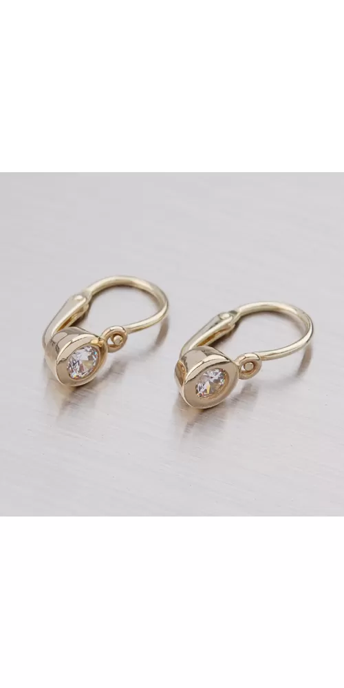 Detské náušnice sú vyrobené zo žltého štrnásťtikarátového zlata 585/1000 v lesklej povrchovej úprave s jedným bielym zirkónom so zapínaním na brizúry.