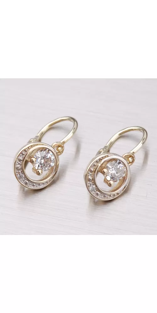 Detské náušnice sú vyrobené v kombinácii zo žltého a bieleho štrnásťtikarátového zlata 585/1000 v lesklej povrchovej úprave s jedným väčším a jedným drobnejším bielym zirkónom. Náušničky sa zapínajú na brizúry.