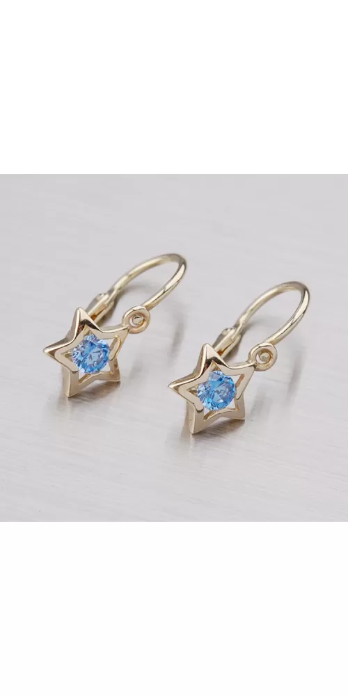 Hviezdičky - detské náušničky sú vyrobené zo žltého štrnásťtikarátového zlata 585/1000 v lesklej povrchovej úprave s jedným modrým zirkónom so zapínaním na brizúry.