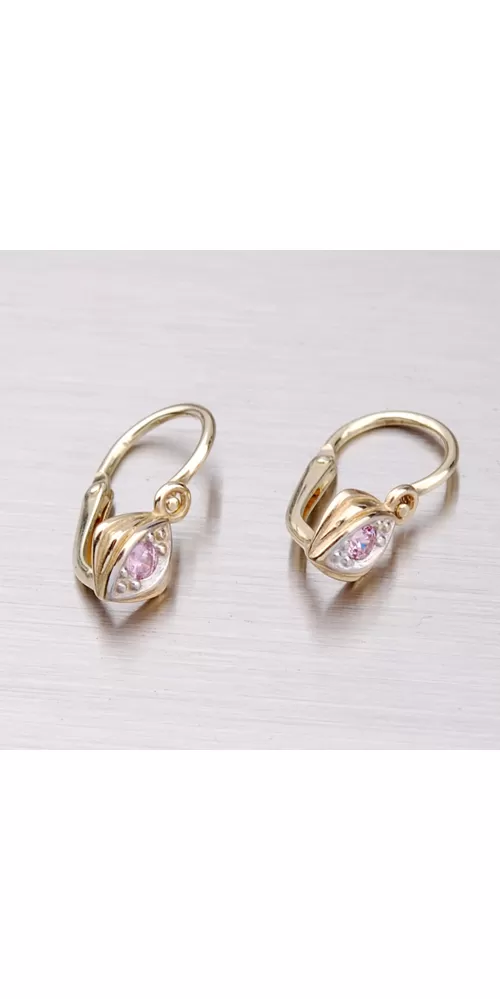 Detské náušnice sú vyrobené v kombinácii zo žltého a bieleho štrnásťtikarátového zlata 585/1000 v lesklej povrchovej úprave s jedným zirkónom ružovej farby. Náušničky sa zapínajú na brizúry.