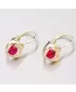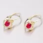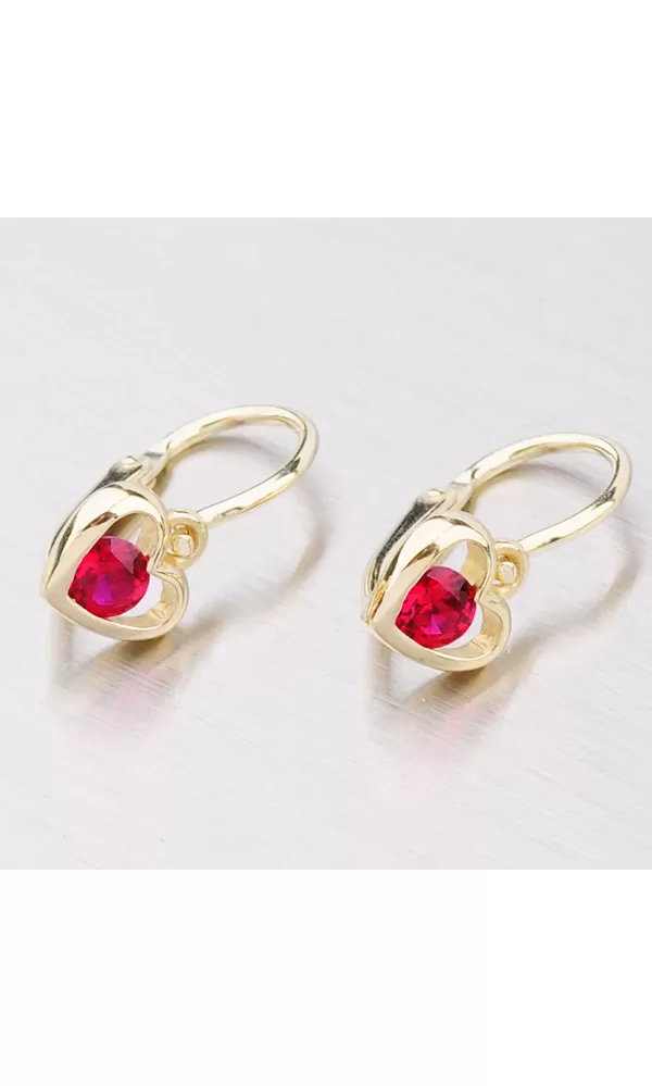Detské náušničky v tvare srdiečka, sú vyrobené zo žltého štrnásťkarátového zlata 585/1000 v lesklej povrchovej úprave. Tieto detské žiarivé náušničky sú zdobené červeným zirkónom zirkónom s priemerom 3mm.