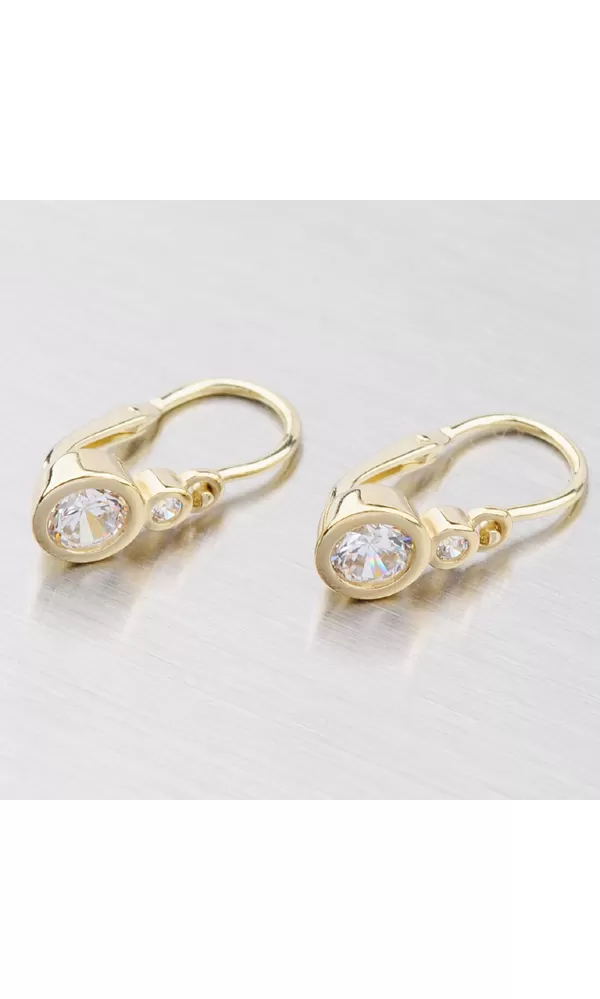 Detské náušničky sú vyrobené zo žltého štrnásťtikarátového zlata 585/1000 v lesklej povrchovej úprave. Detské náušničky sú zdobené dvoma bielymi… Celý popis