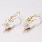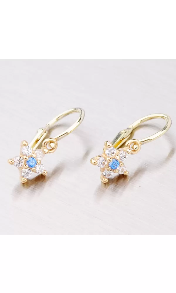 Náušničky v tvare kvietky, sú vyrobené zo žltého štrnásťkarátového zlata 585/1000 v lesklej povrchovej úprave s piatimi bielymi zirkónmi zobrazujúcimi kvietky as jedným modrým zirkónom uprostred.