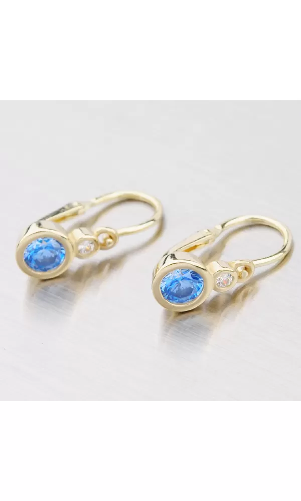 Detské náušničky sú vyrobené zo žltého štrnásťtikarátového zlata 585/1000 v lesklej povrchovej úprave. Náušničky sú zdobené jedným modrým zirkónom s… Celý popis