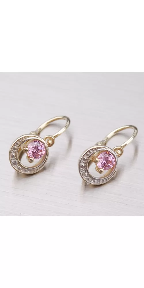 Detské náušnice sú vyrobené v kombinácii zo žltého a bieleho štrnásťtikarátového zlata 585/1000 v lesklej povrchovej úprave s jedným väčším zirkónom ružovej farby a jedným drobnejším bielym zirkónom. Náušničky sa zapínajú na brizúry.