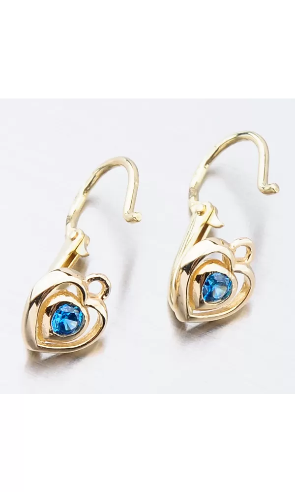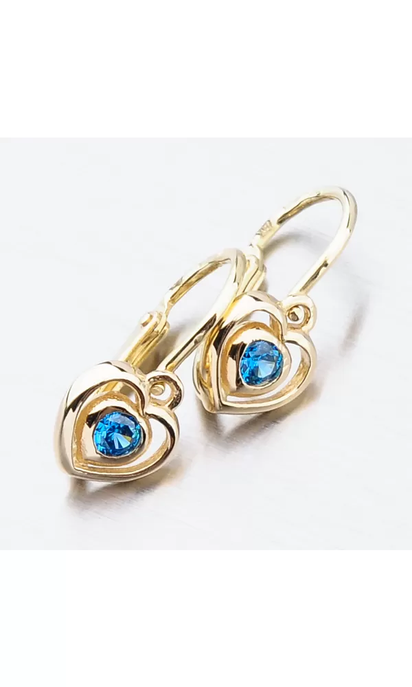 Náušnice budou pravděpodobně prvním šperkem vaší malé princezny. Proto si necháváme záležet na jejich provedení o to více. Tento model dětských náušnic je navržen tak, aby co nejméně překážel. Zaoblené hrany a pevné zapínání na přední straně slibují pohodlnost a bezpečí. Náušnice jsou zdobeny srdíčkem, které se ve svém středu může pyšnit nádherným modrým zirkonem v briliantovém brusu. Tento brus zajišťuje zirkonům dokonalý odraz světla a zirkony se nádherně třpytí.