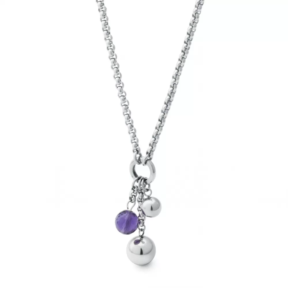 Náhrdelník zdobený guličkami z ocele a fialovými guličkami swarovski je vyrobený z chirurgickej ocele so zapínaním na karabínku v lesklej povrchovej úprave.