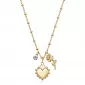 Elegantný náhrdelník z kolekcie Chakra vnesie do vášho štýlu jemnú symboliku lásky a nádeje. Vyrobený z hypoalergénnej ocele s jemným príveskom v tvare srdca a jemnou ružou zdobenou bielymi kryštálmi, je pútavý bez toho, aby bol prehnaný. Oceľ je opatrená PVD povlakom vo farbe žltého zlata. Vďaka dĺžke 54 cm sa pohodlne nosí ako samostatný doplnok alebo v kombinácii s inou jemnou retiazkou.
