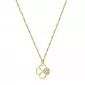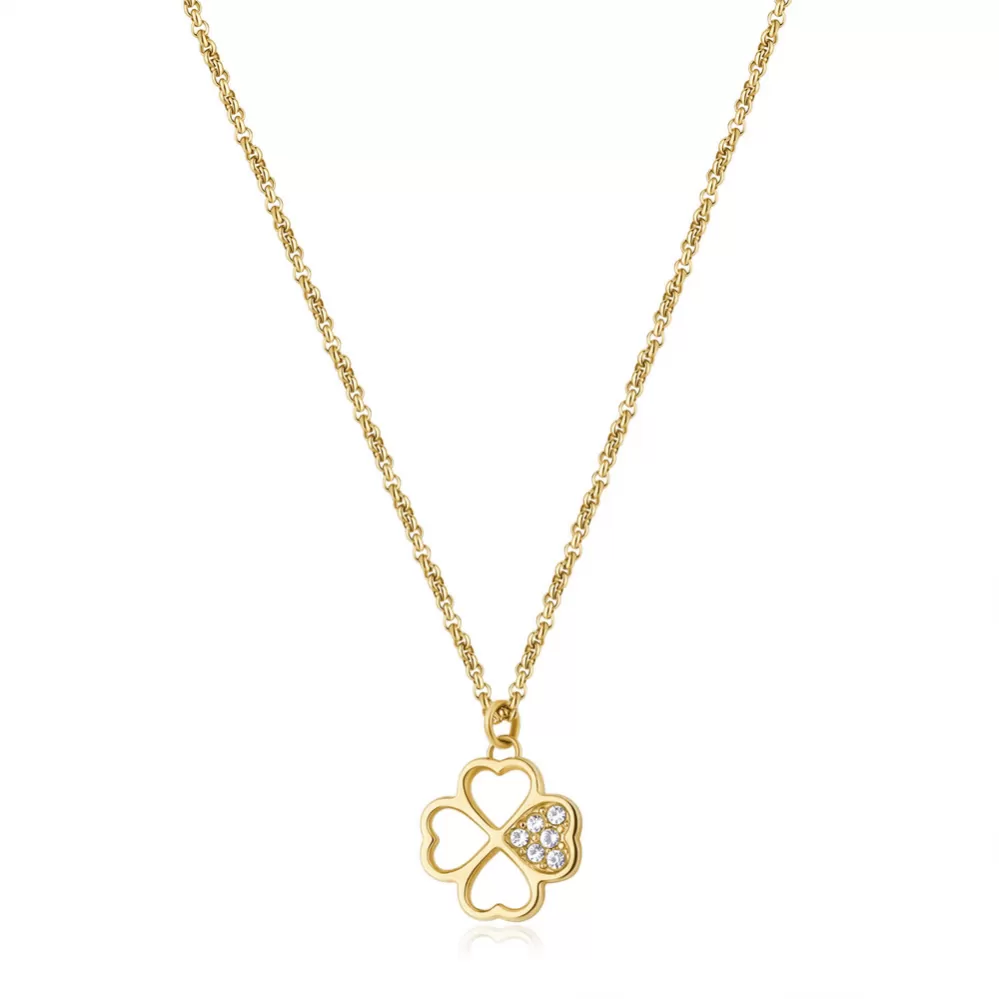 Darujte náhrdelník pre šťastie. Náhrdelník je vyrobený z vysoko kvalitnej nerezovej ocele v lesklej povrchovej úprave. Oceľ je ošetrená PVD povrchovou úpravou vo farbe žltého zlata. Náhrdelník zdobí prívesok s motívom štvorlístka, ktorý je precízne vysadený Swarovski kryštálmi.