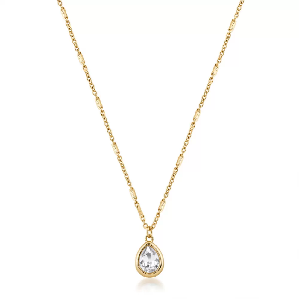 Decentný a veľmi originálny set je vyrobený z kvalitnej nehrdzavejúcej ocele s lesklou povrchovou úpravou. Oceľ je upravená PVD zlatom. Oceľový set pozostáva zo zaujímavej retiazky a ozdobného prívesku v tvare kvapky, ktorý drží kryštál Swarovski. Náhrdelník je vhodný na každodenné nosenie aj na špeciálne príležitosti.
