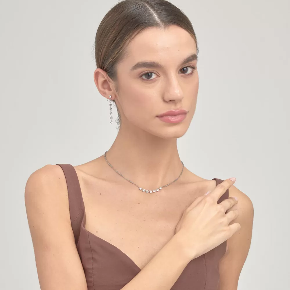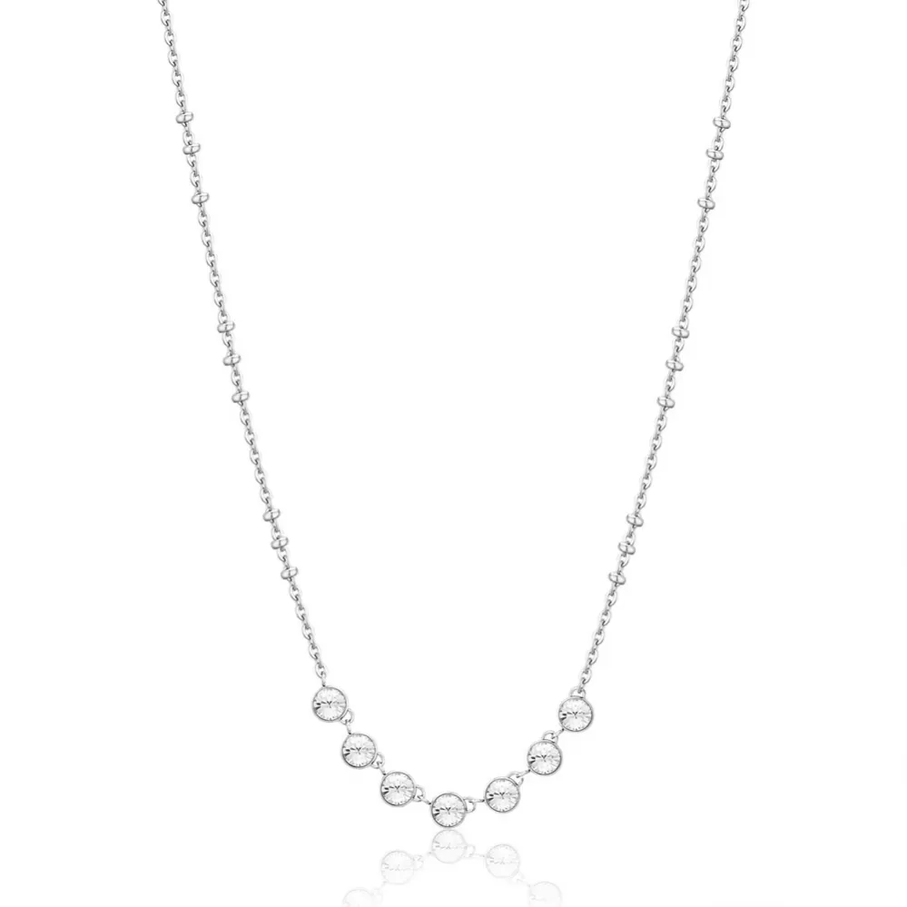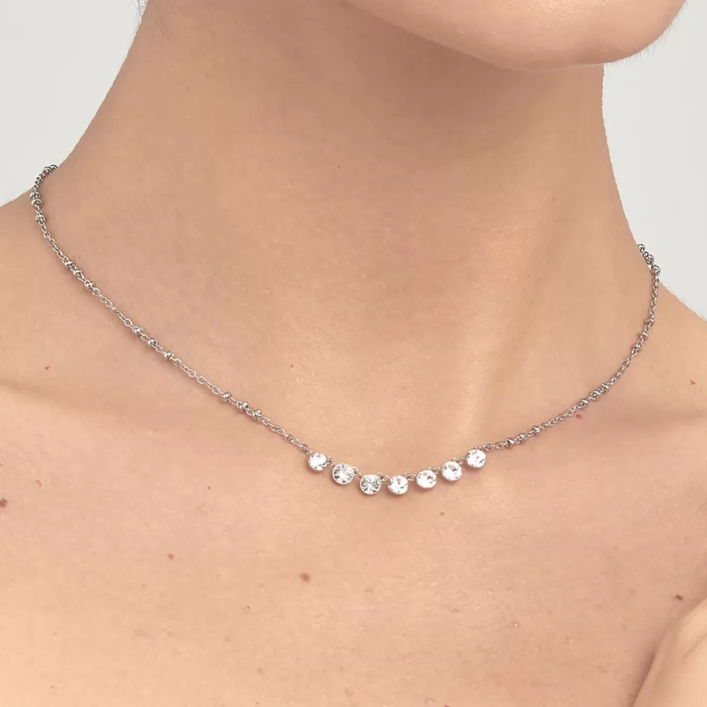 Veľmi jemný a decentný náhrdelník pre ženy je vyrobený z vysoko kvalitnej nerezovej ocele v lesklej povrchovej úprave. Náhrdelník zdobia okrúhle Swarovski kryštály, ktoré dokonale odrážajú svetlo a vytvárajú tak dokonalý lesk.
