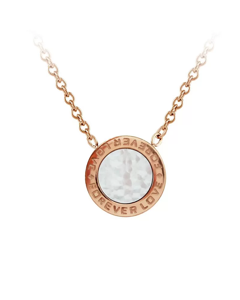 Ozdobte svoj dekolt náhrdelníkom z chirurgickej ocele, ktorá je pozlátená technikou PVD. Prednosťou zlatenia technológií PVD je vysoká tvrdosť a odolnosť proti oteru! Ide o hrubú vrstvu, ktorá preniká do pôvodného materiálu. Zlatenie technológií PVD sa dá porovnať s približne 12 mikrónmi galvanického zlatenia, čo je vysoká hodnota, ktorá pri bežnom nosení vydrží až 12 rokov. Náhrdelník je zdobený okrúhlym príveskom s nápisom LOVE Forever a perleťovou výplňou uprostred. Zapína sa na karabínu.