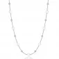 Náhrdelník je elegantný šperk určený pre ženy, ktoré oceňujú nadčasový dizajn a kvalitné spracovanie. Je vyrobená z vysokej kvality chirurgickej ocele, ktorá je hypoalergénna a odolná voči opotrebovaniu. Dizajn náhrdelníka pozostáva z reťazca, na ktorej sú korálky navlečené v napodobňovaní bielych perly, ktoré dodávajú šperku mäkkosť a sofistikovanosť. Dĺžka náhrdelníka je 46 cm, čo je ideálne na pohodlné opotrebenie, a upevnenie sa vyrieši oceľovým karabírom, ktorý zaisťuje bezpečné a ľahké nasadenie.