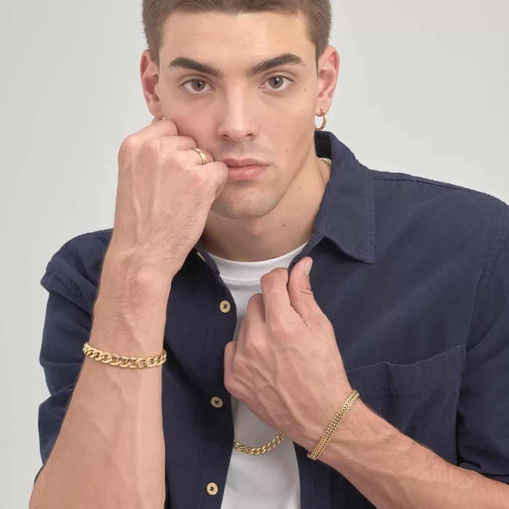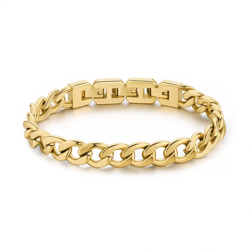 Masívny pánsky náramok je vyrobený z vysoko kvalitnej nerezovej ocele, ktorá je opatrená PVD povrchovou úpravou vo farbe žltého zlata. Náramok je vyrobený z najvyššej starostlivosti a precízností pre Vaše maximálne pohodlie.