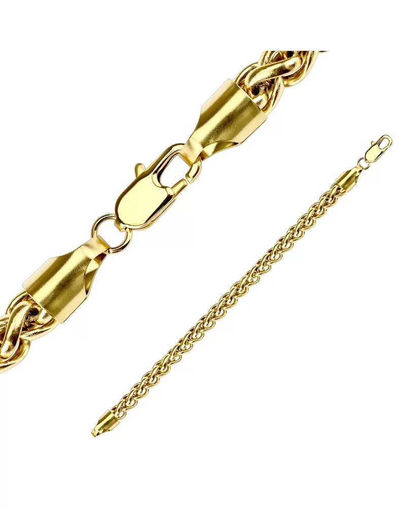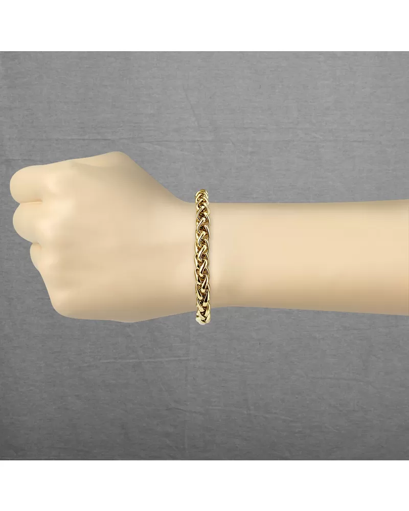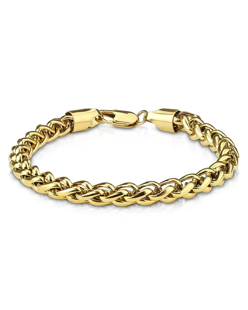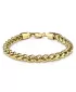 Ozdobte svoje zápästie masívnym náramkom z chirurgickej ocele v lesklej povrchovej úprave. Oceľ je opatrená PVD povrchovou úpravou vo farbe žltého zlata. Prednosťou zlatenia technológií PVD je vysoká tvrdosť a odolnosť proti oteru! Ide o hrubú vrstvu, ktorá preniká do pôvodného materiálu. Zlatenie technológií PVD sa dá porovnať s približne 6 mikrónmi galvanického zlatenia, čo je vysoká hodnota, ktorá pri bežnom nosení vydrží až niekoľko rokov.  Náramok je pohodlný a neprehliadnuteľný. Zapína sa na karabínku.