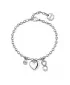 Oslnivý náramek pro ženy je zhotoven z vysoce kvalitní nerezové oceli v lesklém provedení. Náramek je zdoben dekorativními přívěsky, které jsou osázeny Swarovski krystaly v bílé barvě. Náramek je velmi pohodlný a každému zápěstí sluší. Tento šperk je chráněn proti ztrátě karabinou.