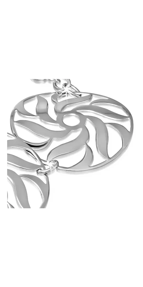 Tento náramok si zamilujú tie ženy a dievčatá, ktoré milujú extravagantné a výrazné šperky. Náramok je vyrobený z chirurgickej ocele v lesklej povrchovej úprave av striebornej farbe so zapínaním na karabínu.