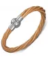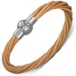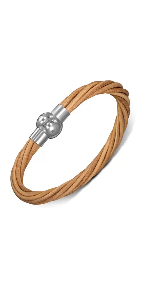 Krásny náramok svetlohnedej farby je vyrobený z kožených povrázkov z oceľovým zapínaním na magnet.