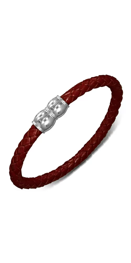 Krásny náramok tmavočervenej farby je vyrobený z kože z oceľovým zapínaním na magnet. Náramok ná univerzálna veľkosť a je dlhý 21 cm .
