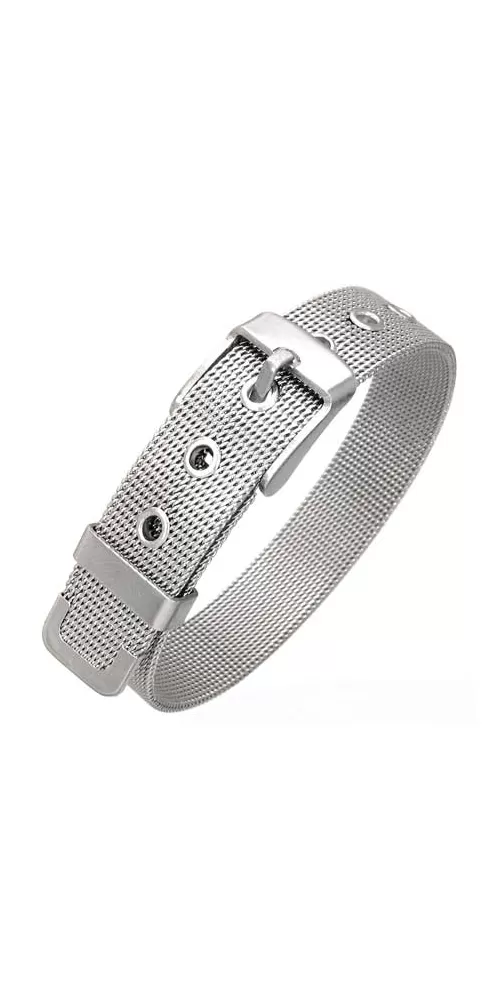 Moderný chirurgický oceľový náramok v lesklom povrchu. Náramok je zapnutý pomocou pracky medzi 15 a 19 cm.