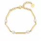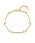 Nádherný a vysoko elegantný náramok pre ženy je vyrobený z ušľachtilej ocele, ktorá je opatrená PVD povrchovou pravou vo farbe žltého zlata. Náramok zdobia biele umelé perly. Dĺžka náramku je 16 cm, s využitím retiazky 3 cm, je možné náramok zapnúť v dĺžke 16 až 19 cm. Nastaviteľná dĺžka má úžasnú výhodu v tom, že nemusíte poznať presnú dĺžku náramku a obdarovaná osoba si dĺžku sama upraví podľa vlastných preferencií. Náramok sa zapína na spoľahlivú karabínu.