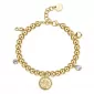 Náramok tvorený hladkými guličkami je vyrobený z vysoko kvalitnej nerezovej ocele, ktorá je ošetrená PVD povrchovou úpravou vo farbe žltého zlata.… Celý popis