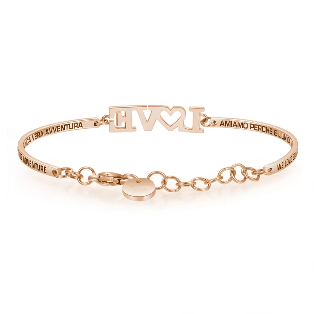Dámsky moderný náramok s výrezmi a nápisom LOVE, Vám dokonale ozdobí zápästie. Dĺžka náramku je 15 cm, s využitím retiazky 3 cm, je možné náramok zapnúť v dĺžke 15 až 18 cm. Nastaviteľná dĺžka má úžasnú výhodu v tom, že nemusíte poznať presnú dĺžku náramku a obdarovaná osoba si dĺžku sama upraví podľa vlastných preferencií. Náramok sa zapína na spoľahlivú karabínu.