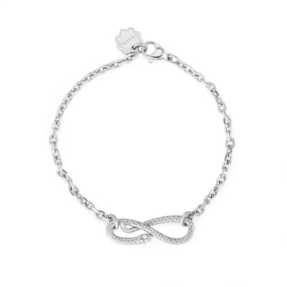 Veľmi efektný náramok je vyrobený z vysoko kvalitnej nerezovej ocele, ktorú ocenia aj citliví jedinci. Náramok je zdobený elegantným hadom, ktorý má namiesto očí Swarovski kryštály. Dĺžka náramku je 18 cm a zapína sa na karabínu.