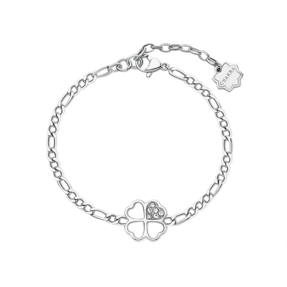 Nádherný a vysoko elegantný náramok pre ženy je vyrobený z ušľachtilej ocele. Náramok zdobí štvorlístok a kryštály Swarovski. Dĺžka náramku je 16 cm, s využitím retiazky 3 cm, je možné náramok zapnúť v dĺžke 16 až 19 cm. Nastaviteľná dĺžka má úžasnú výhodu v tom, že nemusíte poznať presnú dĺžku náramku a obdarovaná osoba si dĺžku sama upraví podľa vlastných preferencií. Náramok sa zapína na spoľahlivú karabínu.