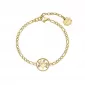 Nádherný a vysoko elegantný náramok pre ženy je vyrobený z ušľachtilej ocele, ktorá je opatrená PVD povrchovou pravou vo farbe žltého zlata. Náramok zdobí okrúhly prívesok v dizajne stromu života, ktorý je zvýraznený Swarovski kryštálmi. Strom života symbolizuje prepojenie zeme s nebom, stabilitu a múdrosť. Dĺžka náramku je 16 cm, s využitím retiazky 3 cm, je možné náramok zapnúť v dĺžke 16 až 19 cm. Nastaviteľná dĺžka má úžasnú výhodu v tom, že nemusíte poznať presnú dĺžku náramku a obdarovaná osoba si dĺžku sama upraví podľa vlastných preferencií. Náramok sa zapína na spoľahlivú karabínu.