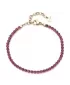 Tento náramok je luxusným doplnkom, ktorý spája moderný dizajn s jemným leskom kubických zirkónov. Je vyrobený z kvalitnej nehrdzavejúcej ocele, ktorá zaručuje vysokú odolnosť a dlhotrvajúci lesk. Oceľ je opatrená PVD povlakom vo farbe žltého zlata. Dominantným prvkom sú precízne brúsené kubické zirkóny v červenej farbe, ktoré pri dopade svetla vytvárajú jemnú hru odleskov a dodávajú kúsku sofistikovaný nádych. Každý zirkón je starostlivo osadený do oceľového lôžka, čo zaručuje bezpečné uchytenie aj pri dlhodobom nosení. Tento model je ideálny pre ženy, ktoré milujú šperky s trblietkami, no zároveň si potrpia na decentný a vkusný štýl.