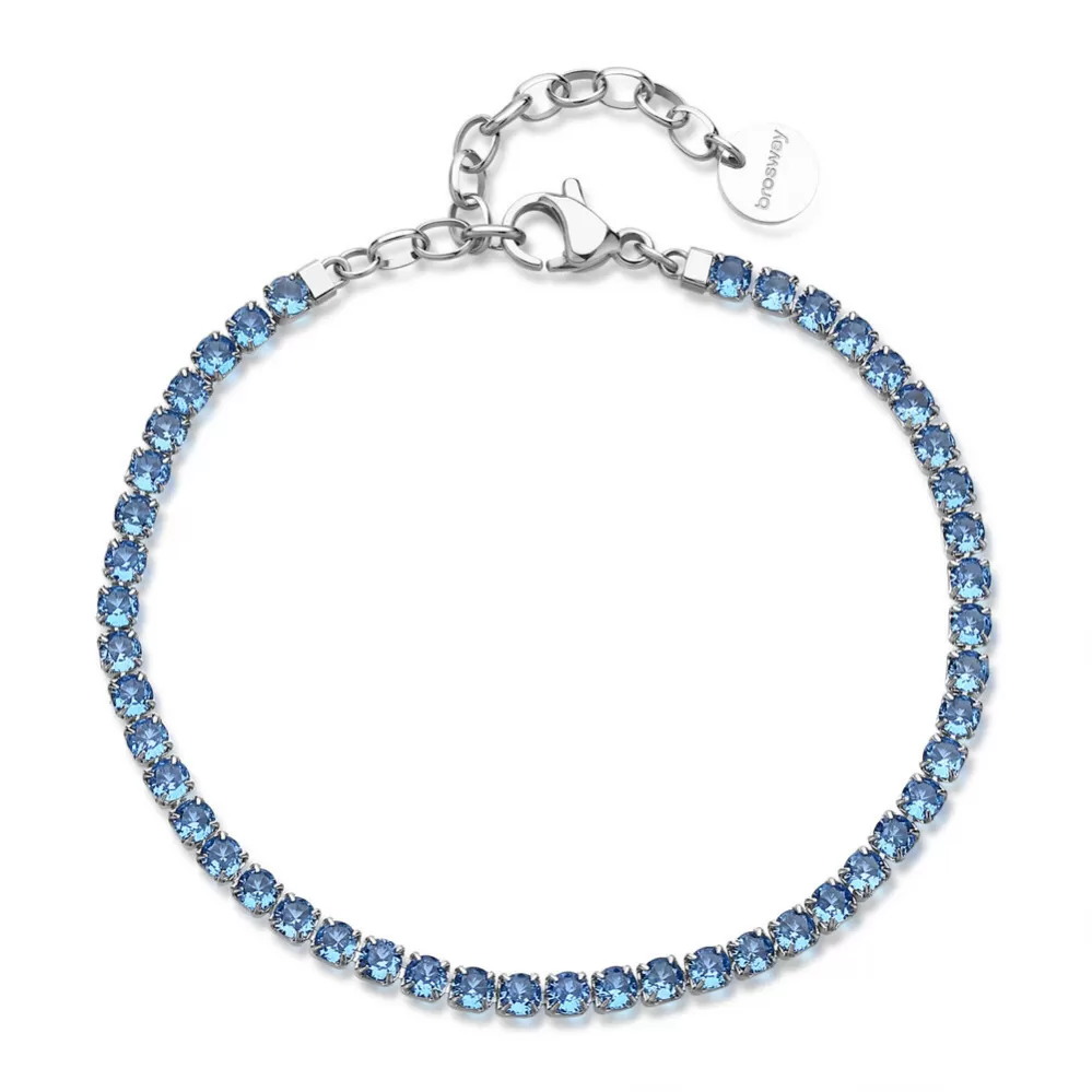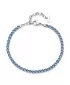 Tento náramok je luxusným doplnkom, ktorý spája moderný dizajn s jemným leskom kubických zirkónov. Je vyrobený z kvalitnej nehrdzavejúcej ocele, ktorá zaručuje vysokú odolnosť a dlhotrvajúci lesk. Dominantným prvkom sú precízne brúsené kubické zirkóny v modrej farbe, ktoré pri dopade svetla vytvárajú jemnú hru odleskov a dodávajú kúsku sofistikovaný nádych. Každý zirkón je starostlivo osadený do oceľového lôžka, čo zaručuje bezpečné uchytenie aj pri dlhodobom nosení. Tento model je ideálny pre ženy, ktoré milujú šperky s trblietkami, no zároveň si potrpia na decentný a vkusný štýl.
