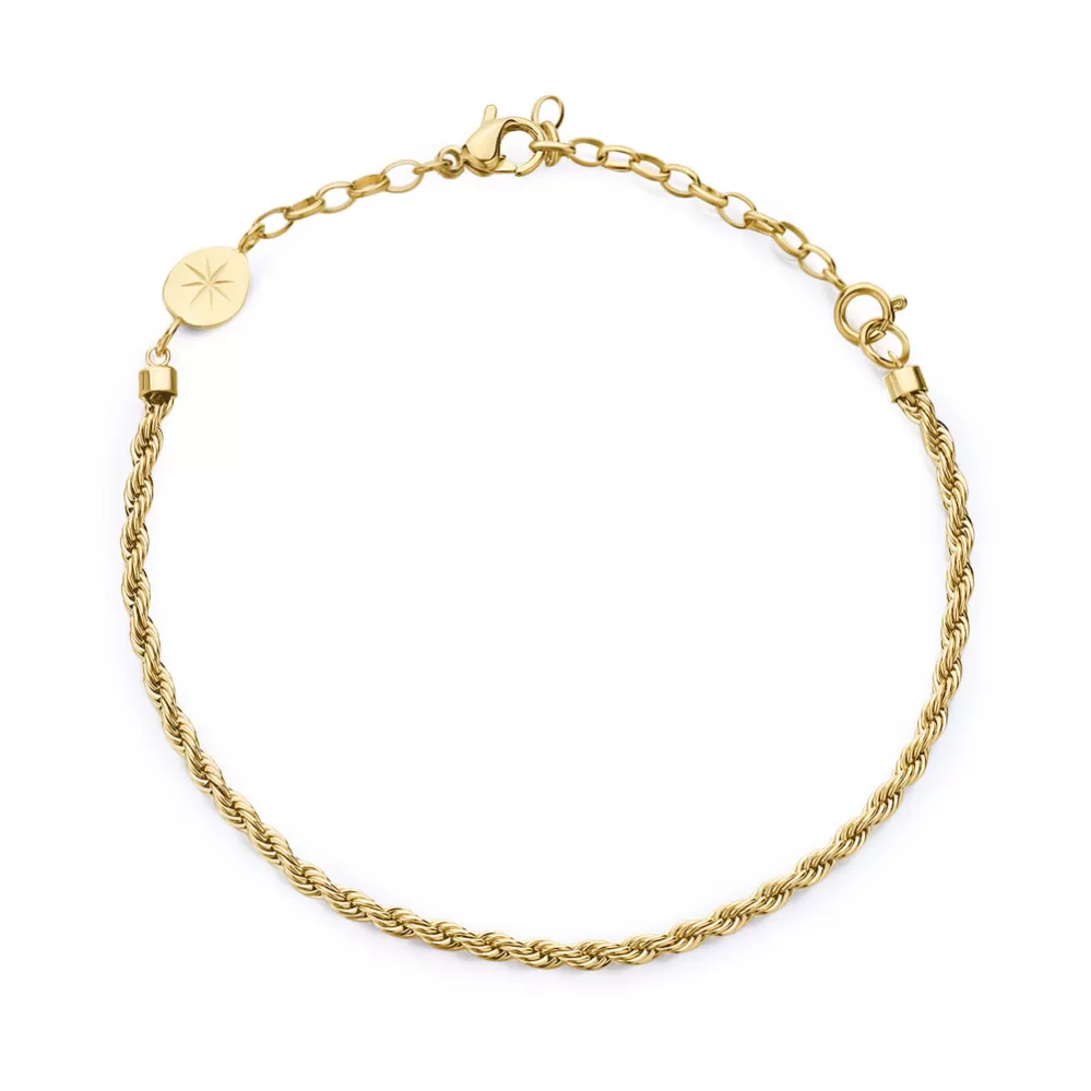 Dámsky decentný náramok je vyrobený z vysoko kvalitnej nerezovej ocele, ktorá je ošetrená PVD povrchovou úpravou vo farbe žltého zlata. Dĺžka náramku je 15 cm, s využitím retiazky 5 cm, je možné náramok zapnúť v dĺžke 15 až 20 cm. Nastaviteľná dĺžka má úžasnú výhodu v tom, že nemusíte poznať presnú dĺžku náramku a obdarovaná osoba si dĺžku sama upraví podľa vlastných preferencií.