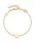 Dámsky elegantný náramok je vyrobený z vysoko kvalitnej nerezovej ocele. Oceľ je ošetrená PVD povrchovou úpravou vo farbe žltého zlata. Dĺžka náramku je 15 cm, s využitím retiazky 5 cm, je možné náramok zapnúť v dĺžke 15 až 20 cm. Nastaviteľná dĺžka má úžasnú výhodu v tom, že nemusíte poznať presnú dĺžku náramku a obdarovaná osoba si dĺžku sama upraví podľa vlastných preferencií.