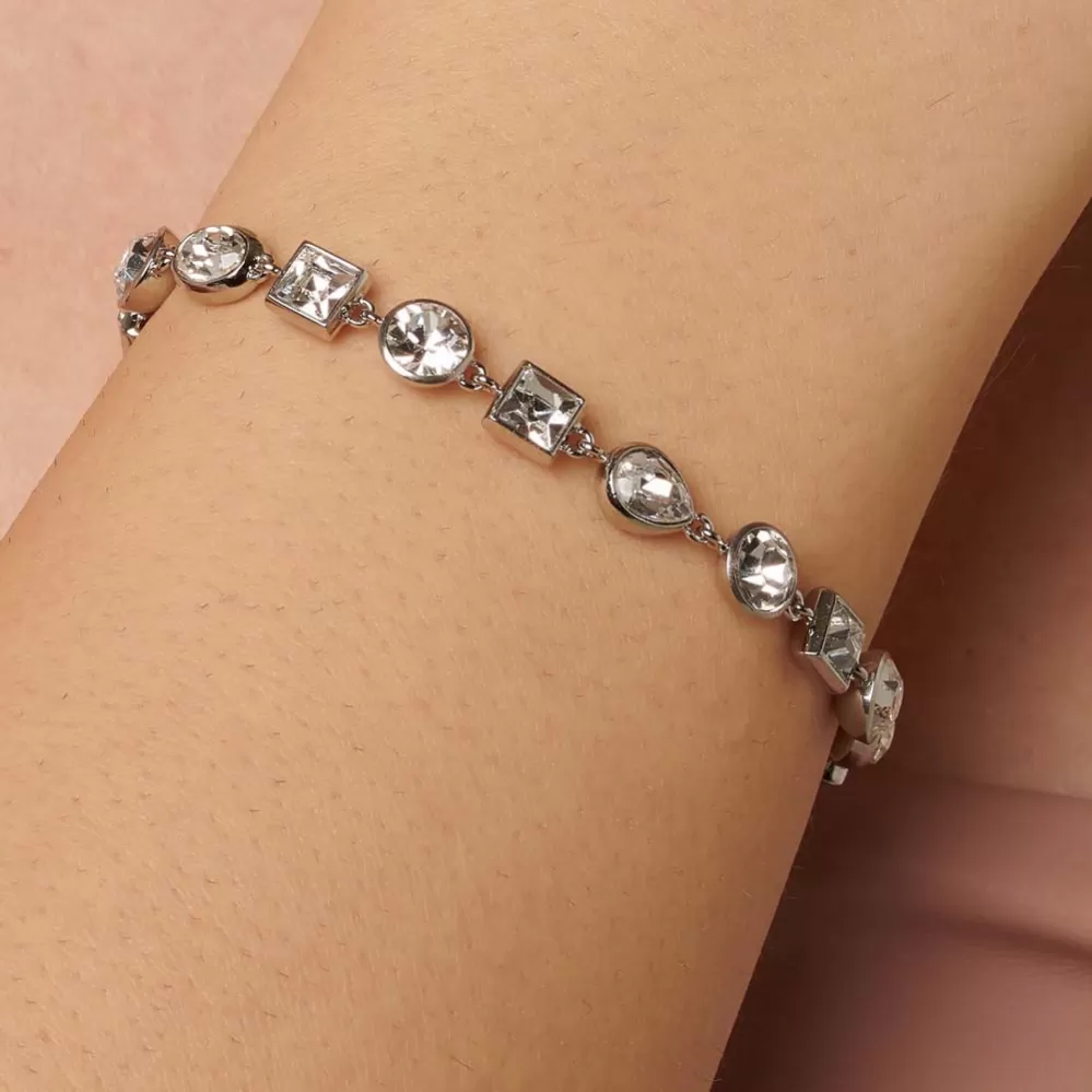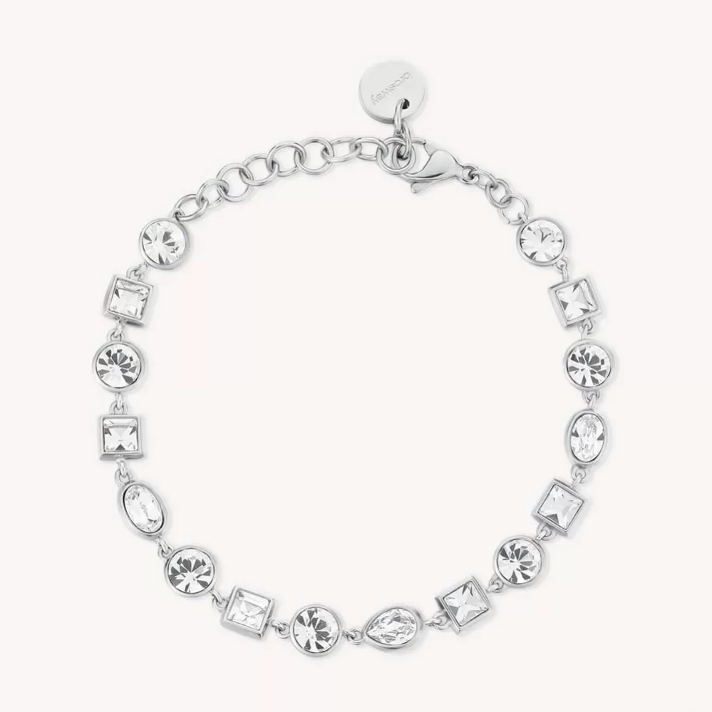 Dámsky náramok je vyrobený z vysoko kvalitnej nerezovej ocele v lesklej povrchovej úprave. Náramok zdobia prvotriedne kryštály Swarovski v bielej farbe. Dĺžka náramku je 15 cm, s využitím retiazky 4 cm, je možné náramok zapnúť v dĺžke 15 až 19 cm. Nastaviteľná dĺžka má úžasnú výhodu v tom, že nemusíte poznať presnú dĺžku náramku a obdarovaná osoba si dĺžku sama upraví podľa vlastných preferencií. Náramok sa zapína na spoľahlivú karabínu.