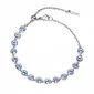 Žiarivý a veľmi luxusný kúsok, ktorý rozžiari zápästie každej žene. Náramok je vyrobený z vysoko kvalitnej ocele a je bohato zdobený Swarovski kryštálmi v modrej farbe. Dĺžka náramku je 15 cm, s využitím retiazky 3 cm, je možné náramok zapnúť v dĺžke 15 až 18 cm. Nastaviteľná dĺžka má úžasnú výhodu v tom, že nemusíte poznať presnú dĺžku náramku a obdarovaná osoba si dĺžku sama upraví podľa vlastných preferencií.