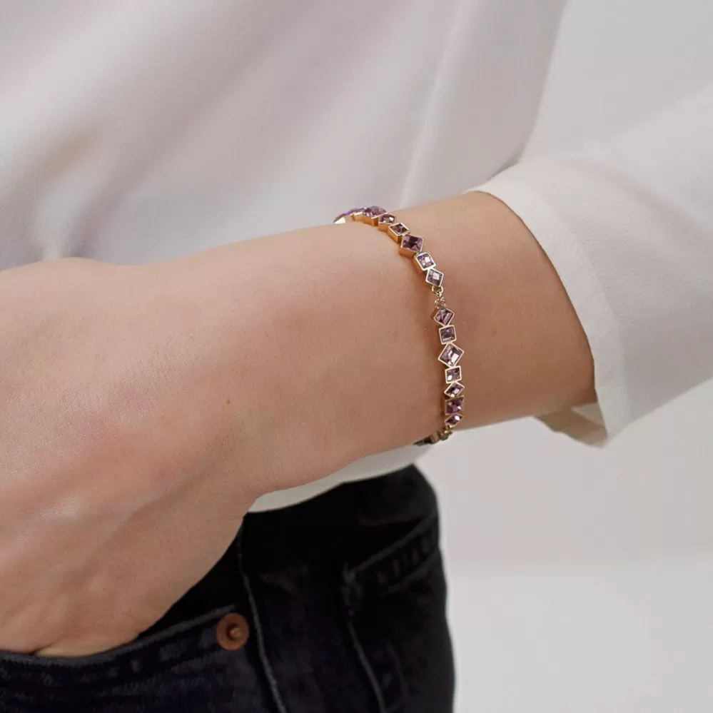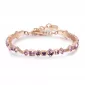 Nádherný, dámsky náramok, s ktorým zažiarite je vyrobený z vysoko ušľachtilej ocele, ktorá je opatrená PVD povrchovou úpravou vo farbe ružového zlata. Náramok je bohato zdobený Swarovski kryštálmi v ružovej farbe v rôznych veľkostiach. Dĺžka náramku je 15 cm, s využitím retiazky 3 cm, je možné náramok zapnúť v dĺžke 15 až 18 cm. Nastaviteľná dĺžka má úžasnú výhodu v tom, že nemusíte poznať presnú dĺžku náramku a obdarovaná osoba si dĺžku sama upraví podľa vlastných preferencií.