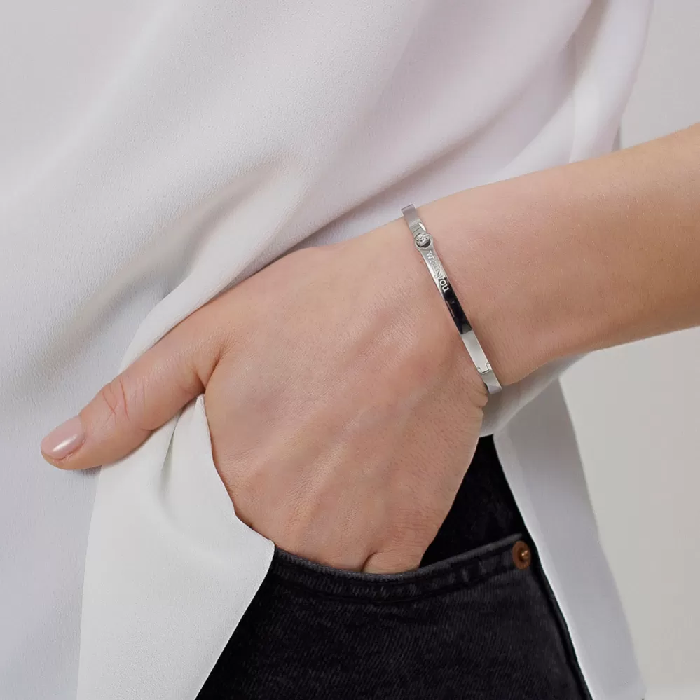 Veľmi elegantný náramok je vyrobený z vysoko kvalitnej ušľachtilej ocele v lesklej povrchovej úprave. Náramok zdobí prvotriedny kryštál Swarovski.