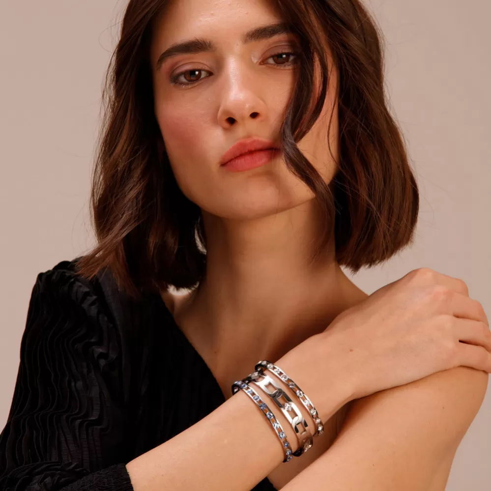 Nežný a veľmi ženský model dámskeho náramku je vyrobený z kvalitnej ušľachtilej ocele v lesklej povrchovej úprave. Náramok zdobí prvotriednymi kryštálmi Swarovski, ktorý rozžiari Vaše zápästie.