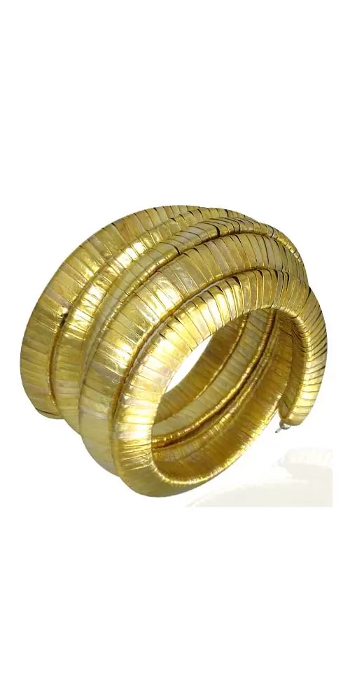 Dámsky náramok je z pevných tesne pri sebe zasadených očiek a je vyrobený z chirurgickej ocele silným pozlátením technológií PVD. Lesklá povrchová úprava. Náramok má univerzálnu veľkosť a je niekoľkokrát obtočený okolo ruky.