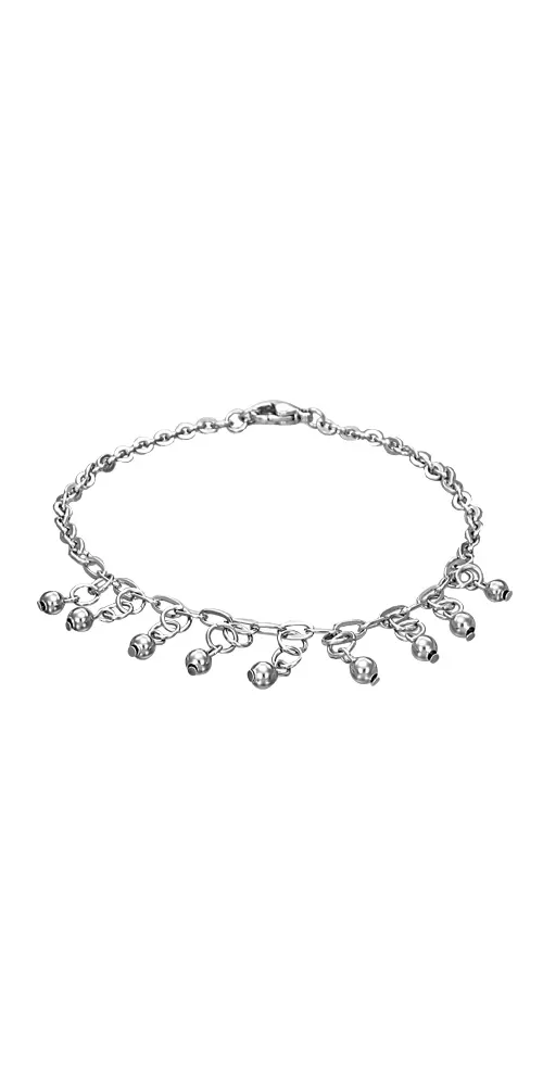 Náramok z chirurgickej ocele z ankrovej retiazky s príveskami s guličkami v lesklej povrchovej úprave so zapínaním na karabínku.