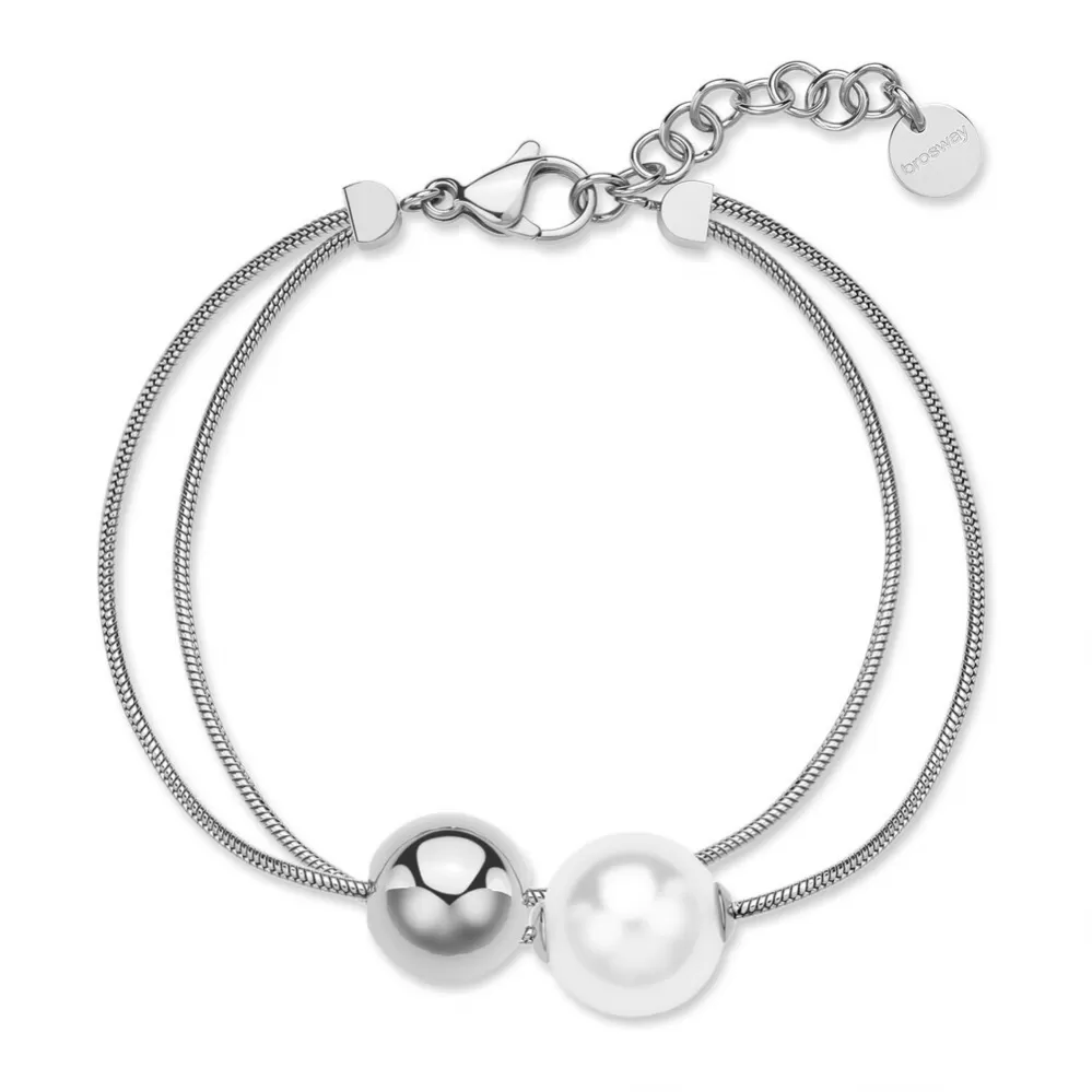 Tento náramok je elegantný a moderný dámsky klenot, ktorý kombinuje minimalistický dizajn s kvalitným spracovaním. Tento náramok je ideálnou voľbou pre ženy, ktoré hľadajú štýlové príslušenstvo pre každodenné opotrebenie a špeciálne príležitosti. Náramok je vyrobený z chirurgickej ocele vysokej kvality, ktorá zaisťuje jej dlhú odolnosť voči životu a opotrebenia. Dizajn náramkov pozostáva z dvoch reťazcov, na ktorých sú korálky navlečené v napodobňovaní bielych perly a ocele. Tento kombinovaný vzhľad dodáva jemnosť a sofistikovanosť. Dĺžka náramku je 19 cm, čo je ideálne pre pohodlné opotrebenie.